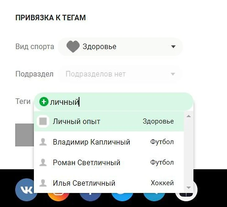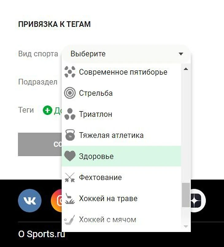 Если вы хотите, чтобы ваш пост заметили редакторы раздела «Здоровье», выберите в качестве вида спорта «Здоровье».