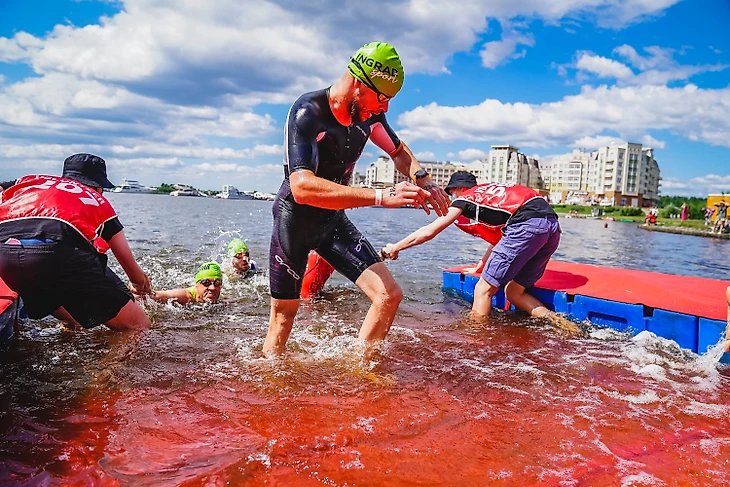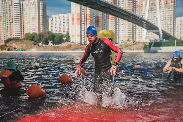 Стою в середине age group коридора, раздражен, что не успел влезть в первые группы стартующих. Гидрики отменили, масса начала двигаться на роллинг по 4 человека.. понимаю, что никогда не плавал 1000м на открытой воде без костюма, не знаю что будет в воде и это самое опасное, потряхивает. Коридор двигается быстро и вот моя четверка , волонтёр убирает руки и мы бежим, спокойно монотонно , бах в воде...