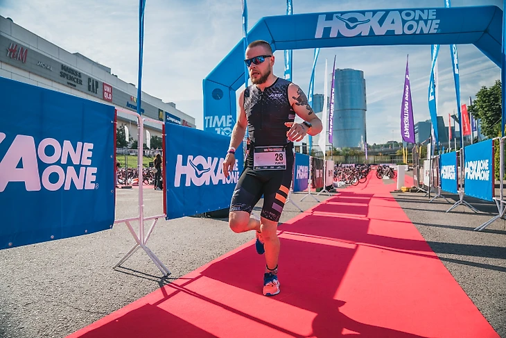 Нога подвернулась, стало больно, но она сразу встала на место, воду кепкой зачерпнул, охладился и несусь дальше, темп поднял до 4:20 стабильно. На 3 км душевые пробегаю чтобы максимально охладиться, беру воду у волонтеров ( главных спасителей на дистанции, спасибо вам от души, ребятки), на 5 км разворот , всегда держу ровно, без рывков, обгоняю всех, меня так и никто не добирает. Заход на последний круг, так же ровно иду по 4:20. Остается 1 км до финиша, взвинчиваю темп до 4:00 на км, и постоянно докидываю, за 500м до финиша выхожу на 3:30 и 3 минуты на км. Моя девушка Таня бежит за мной снимает) не успевает за мной с таким темпом и отстает, вижу перед створом участника, максимальное ускорение на 2:50. Итог на финише 2:22ч , все хорошо но плавание ужасно, и это был провал.