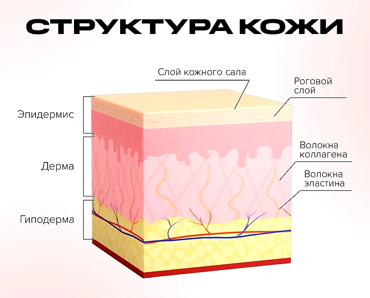 Кожа состоит из трех слоев: самый глубокий – гиподерма (или подкожно-жировая клетчатка); средний – дерма, структуру которой поддерживают коллаген и эластин; верхний – эпидермис, который является своего рода барьером, защищающим от вредных микроорганизмов, механических повреждений и обезвоживания. Здоровье кожи напрямую зависит от состояния эпидермиса. Его сохранность гарантирует, в частности, тонус кожи.