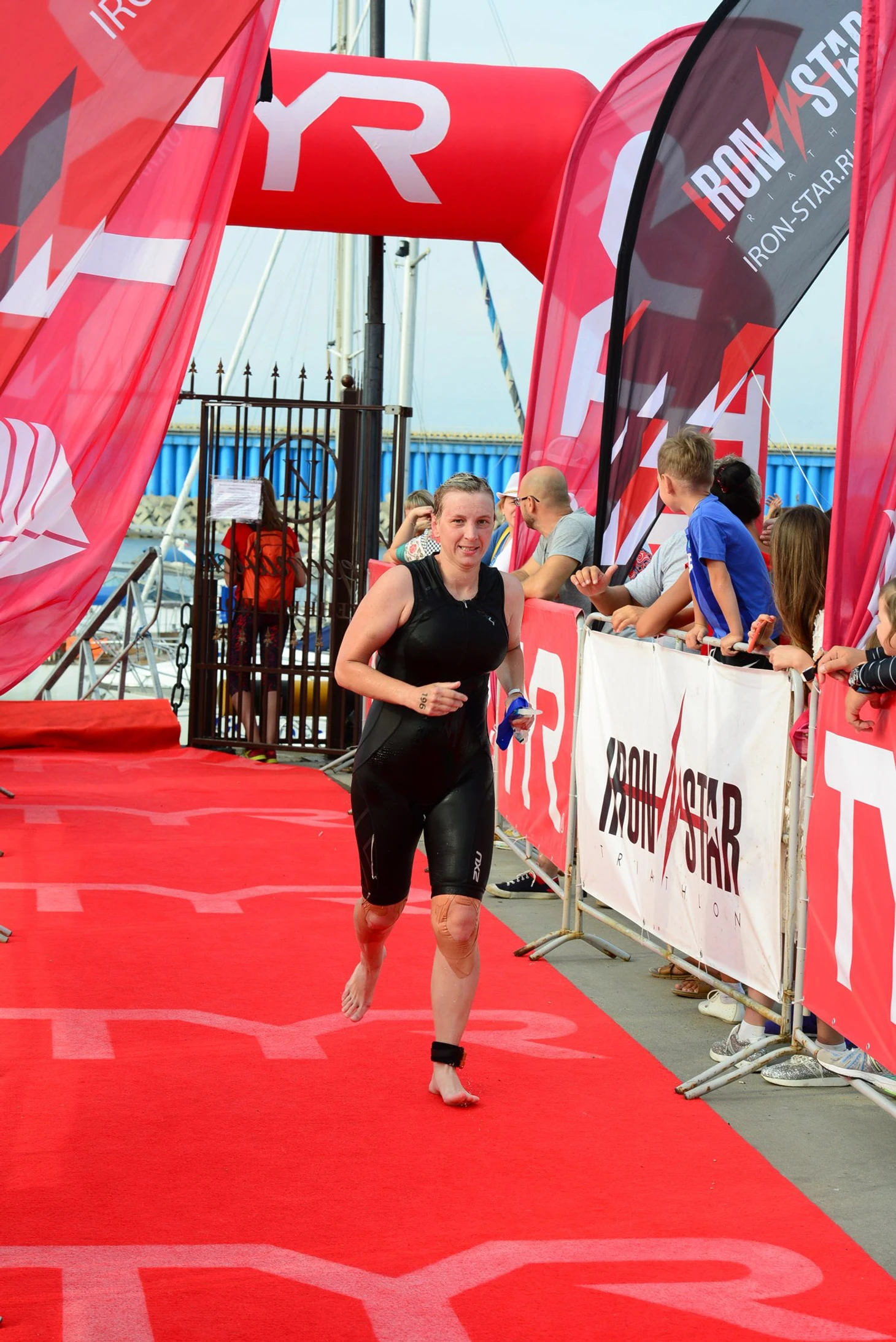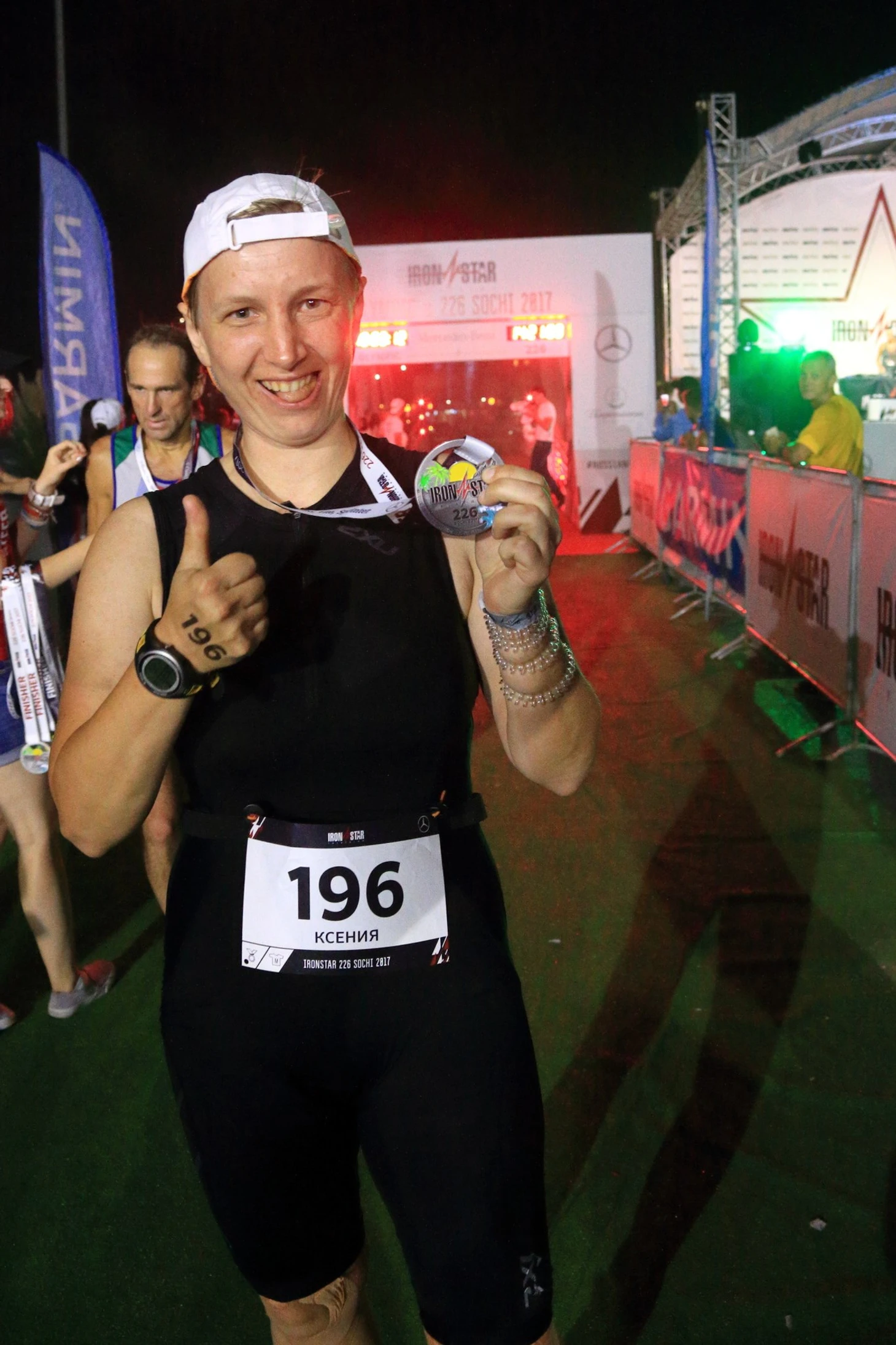 Бег по кругу в 5 км и так 8 раз. Бег в темноте под шум садящихся самолетов, которые освещают собой бушующее море. В тот раз каждый круг твой можно было смотреть на экране, где было написано, сколько кругов тебе еще бежать и это было очень круто. Жаль убрали эту опцию организаторы со следующих стартов. Первые 21 км прошли по плану, а дальше было очень тяжело, ну прям очень. Даже сложно вспомнить, как удалось себя уговаривать двигаться вперед, двигаться и не сдаваться, несмотря на то, что сводило ноги, если бег становился быстрее. Кто-то скажет, что не была готова значит, но я скорее всего просто ошиблась с питанием на велосипедном этапе. И вот последние 5 км бега до финиша. Что такое 5 км, после того как ты уже прошел сегодня 221, после того, как ты уже 13 часов движешься? Что такое 5 км до финиша? Это мысли, мысли о том, что теперь ты дойдешь, добредешь, ты сделаешь, а потом можно будет сесть дома и смотреть "Гарри Поттера". И всё, просто надо перейти эту черту и всё, Гарри Поттер ждет. И включаются какие-то внутренние силы. Благодарю волонтеров всех, кого встречаю, они тут с нами от начала до конца. Таким вот образом, с благодарностью и счастьем, вижу финишную арку, понимаю, что круги закончились. Еще раз проверяю количество браслетов на руке, их точно 8. Значит мой финиш будет законным. Забегаю в арку, вскидываю руки, слышу свое имя и от счастья не могу говорить. Я железный человек.