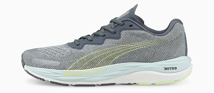 Для создания обуви в сочетании хорошей амортизации и долговечностью Puma использует два разных пеноматериала в межподошвенном пространстве. Насыщенная азотом нитро-пена позволяет смягчить давление стопы и пятки, но в то же время может показаться слишком мягкой или вялой. Для нейтрализации этой мягкости разработчики решили уложить второй слой пены EVA, более прочной, которая действует как своеобразный амортизатор и позволяет комфортно отталкиваться во время движения. Вполне схоже с карбоновой пластиной в более ранних кроссовках racer, но в данном случае стопа чувствует себя более удобно при отталкивании. Как и во всех кроссовках линейки Velocity в данной модели отличная вентиляция, которую обеспечивают сетчатые вставки, хорошее сцепление с асфальтом даже в мокрую погоду благодаря подошве с покрытием Pumagrip. Ну, и отличное дополнение в виде светоотражающих элементов.