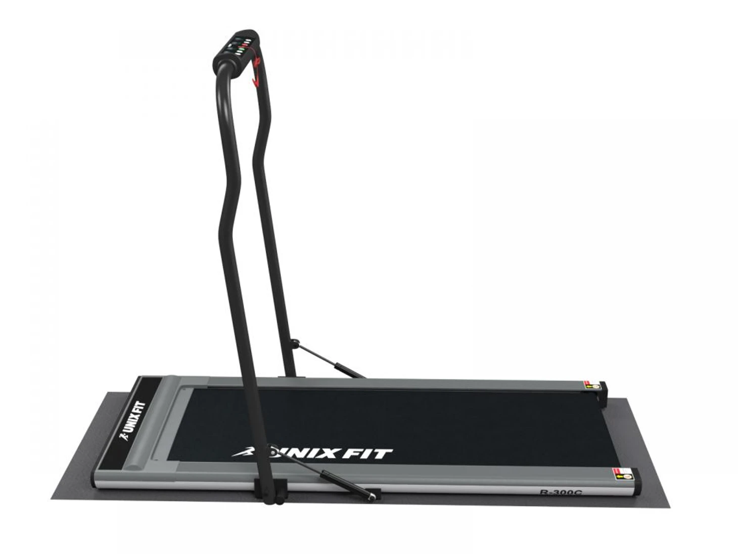 Компактная дорожка UnixFit R-300C тоже может складываться, рассчитана на компактное хранение и занятия в домашних условиях — у нее эффективная система сборки и небольшая рама. После занятий ее можно поместить даже под кровать, поэтому много пространства она не занимает. Полотно дорожки довольно широкое и имеет антискользящее покрытие. Спереди есть поручни, но расположены они не самым удобным образом. Максимальная скорость позволяет проводить тренировки любителям и профессионалам. Модель практически бесшумная, амортизация гасит стуки, скрипы и другие звуки. Впереди расположен дисплей, где можно увидеть данные тренировки.
