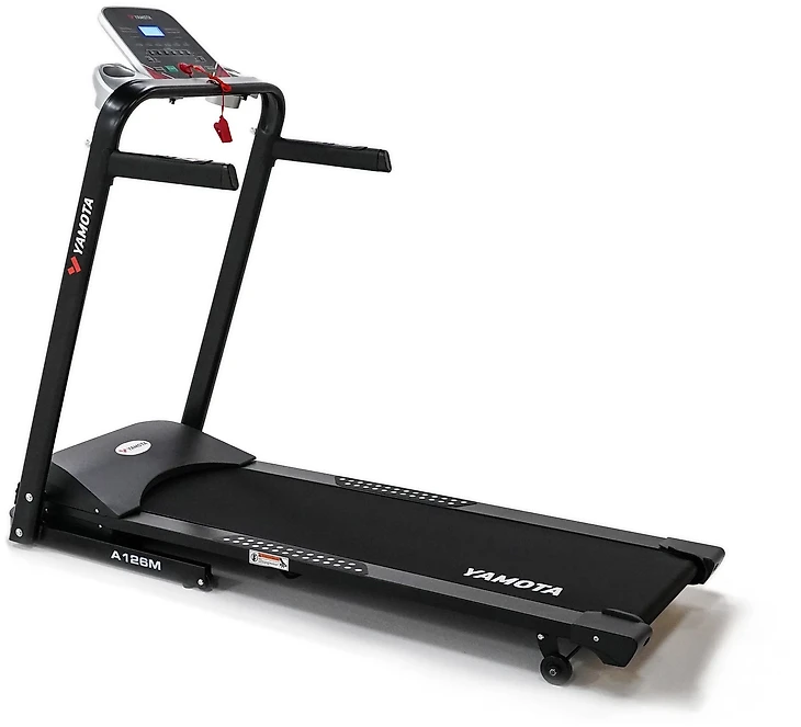 Кардиотренажер Yamota A126M универсален. Его оценят как новички, так и опытные бегуны. Довольно высокая скорость полотна и достаточное число тренировочных программ позволяют совершать тренировки людям разного уровня подготовки. Купив эту беговую дорожку, вы приобретете маленький спортивный центр, который в сложенном виде не займет много места. Во время бега при помощи Bluetooth можно воспроизводить звукозапись, датчик сердцебиения крепится на ручке, приятная мелочь в виде подставки для стакана. В кардиотренажере предусмотрена система шумоподавления Maxquiet, беговое полотно снабжено пятислойным антискользящим покрытием. К сожалению угол наклона полотна устанавливается только вручную, но это не мешает восприятию Yamota A126M как современного востребованного тренажера.