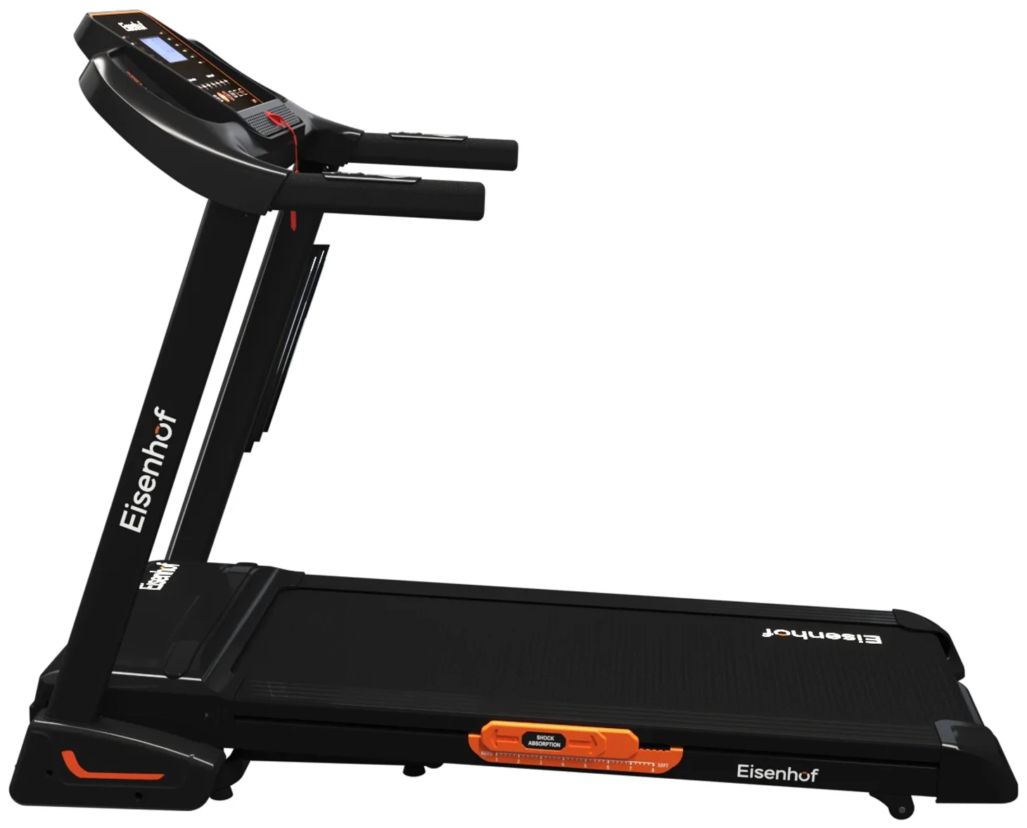 Прежде всего в глаза бросается интересный дизайн Eisenhof TM500, но ценится тренажер не только за внешний вид. В нем сочетается все необходимое для эффективных тренировок в домашних условиях: большое число программ (можно настроить индивидуальные), скорость до 16 километров в час, которую оценят опытные пользователи, автоматическая регулировка наклона полотна до 15 градусов, складная конструкция FastFold, в наличии система амортизации. На дисплей выводятся данные по времени, дистанции, калориям, мониторингу сердечного ритма. Магнитный ключ позволит экстренно остановить полотно. Есть возможность подключать мультимедийные устройства.