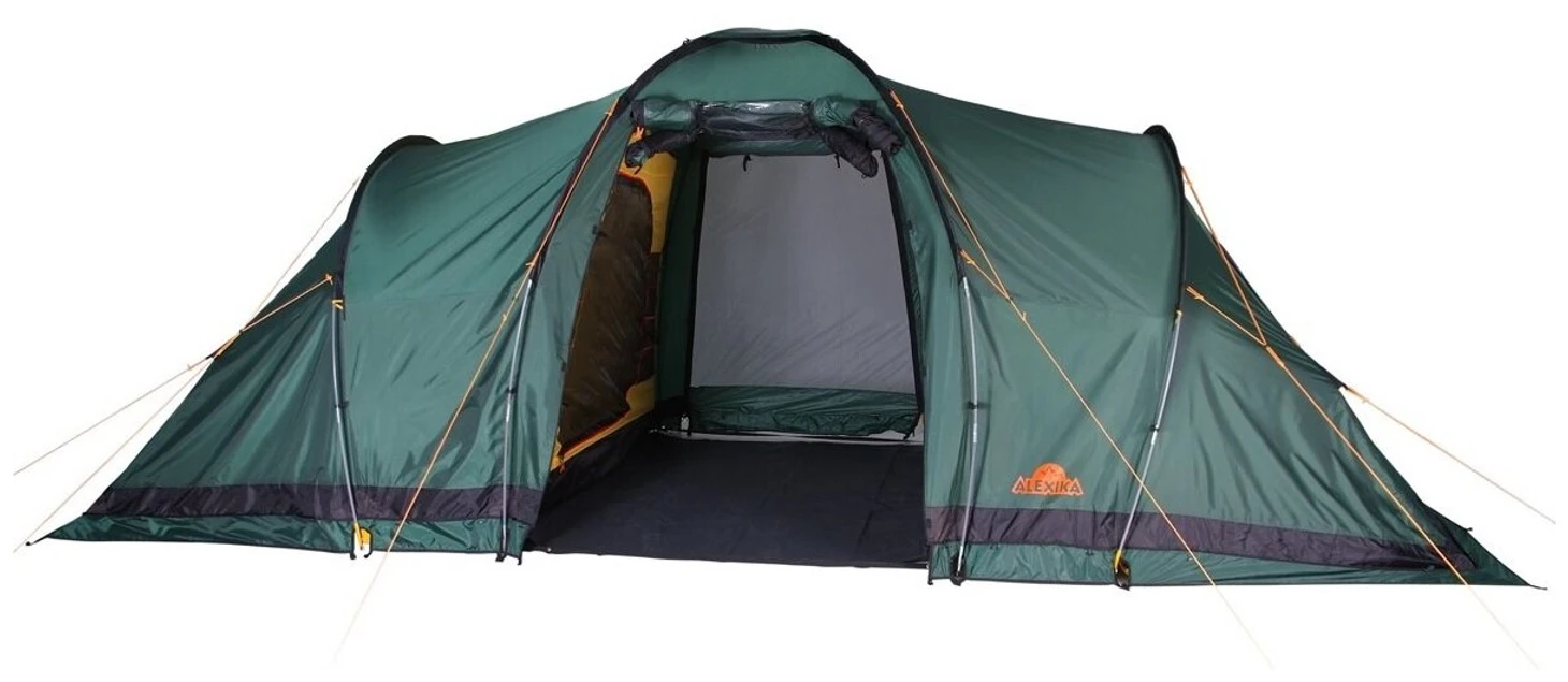Палатку можно назвать маленькой трехкомнатной квартирой на природе. Здесь две спальни с отдельными входами, между ними небольшой холл. Довольно комфортно отдыхать могут две пары или одна семья с двумя детьми. А если на природу выехали двое, то пространство можно оборудовать по своему желанию, например, спальня и гостиная. Установить палатку можно как на равнине, так и в условиях среднегорья. У модели довольно большой вес, что объясняется вместительностью, может отпугнуть цена. Дополнительные удобства: пол в холле съемный, есть возможность установки дополнительного навеса на входе, есть окна для вентиляции и ветровые клапаны, противомоскитные сетки.