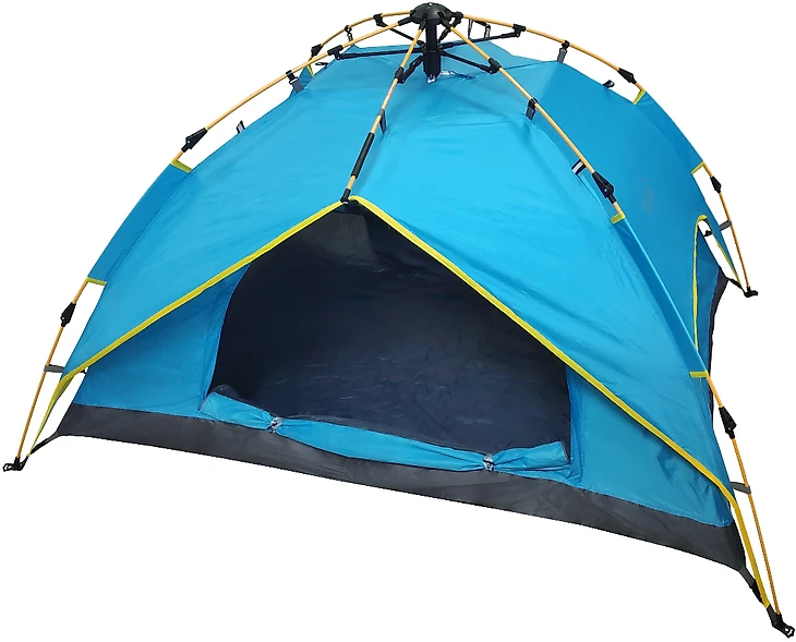 Данная модель палатки уже более вместительная, тут комфортно поместятся трое. Довольно большая водостойкость для непродолжительного отдыха, швы проклеены и не пропускают воду. Дно выполнено из армированного полиэтилена. Высота палатки 120 сантиметров, в полный рост не встанешь, но это выше, чем у большинства палаток для недолгого отдыха. Вход в палатку надежно защищен от комаров и других насекомых антимоскитной сеткой. Конструкцией предусмотрено вентиляционное отверстие – оно помогает избежать конденсата. Предусмотрены карманы и петля, чтобы подвесить фонарик. Палатку предлагают в нескольких расцветках. Стоит добавить, что в данной категории это один из лучших вариантов.