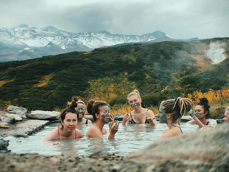 После встречи с местной фауной мы опять поехали на термальные источники. Камчатка в этом смысле просто спа-курорт – без лечебных ванн не останешься. В этот раз был обустроенный горячий бассейн, из которого нужно было бежать в ледяное озеро. На третий раз такого контрастного погружения в груди стало холодно, как будто проглотил кусок замороженного воздуха. На пятый раз уже немного плывет голова и перестаешь ощущать температуру воды.