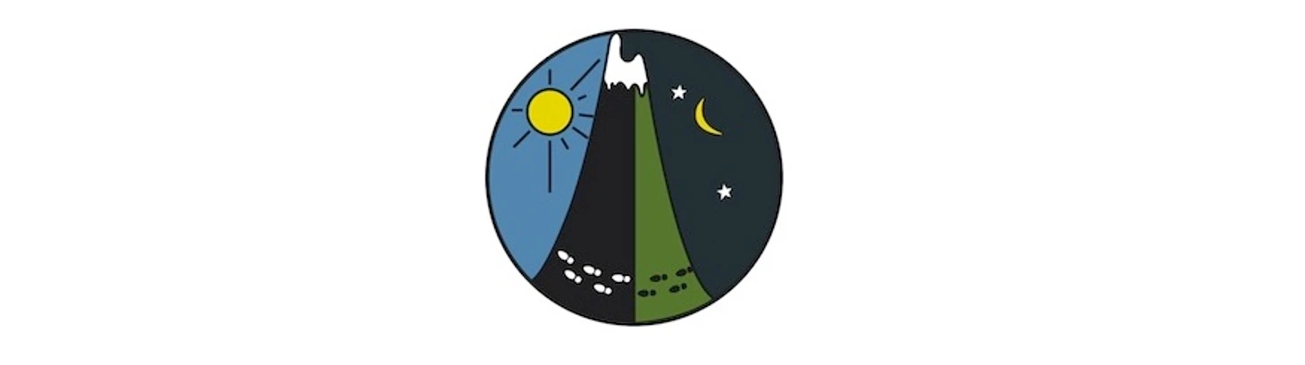 Логотип рогейна, на котором изображена гора в дневное и ночное время суток с отпечатками ботинок вокруг, был разработан Сью Грайс в 1978 году.