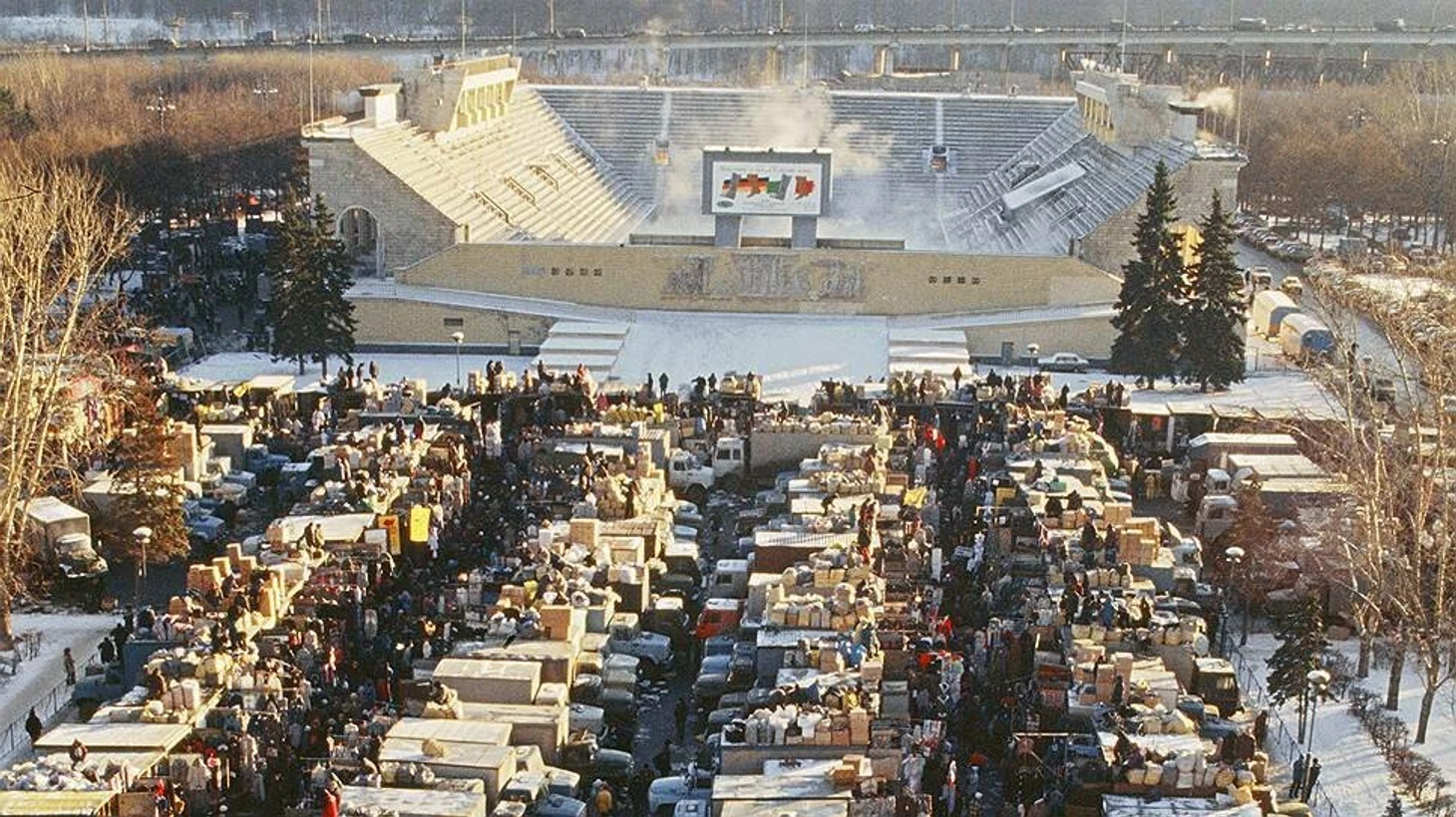 Тогда же в России начались «лихие девяностые», и в Лужниках открылся знаменитый символ эпохи – вещевой рынок. Марафон перенесли к спорткомплексу «Олимпийский», а трасса забега существенно изменилась, частично захватив Садовое кольцо.