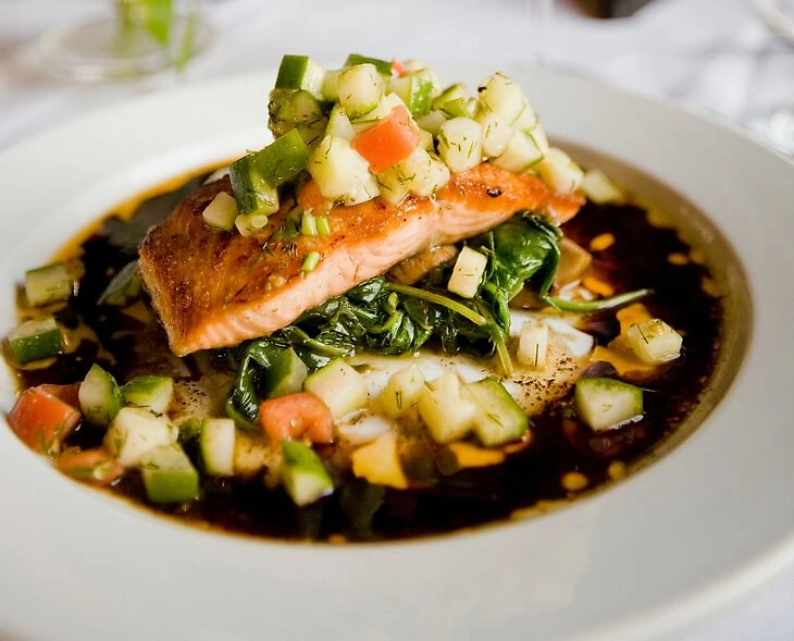 Рыба и морепродукты богаты Омега-жирными кислотами, незаменимыми аминокислотами, витамином D, а также йодом, цинком, селеном и магнием. Такой состав способствует снижению уровня холестерина в крови, замедляя прогрессирование атеросклероза, нормализует вязкость крови, нормализует сократимость сердечной мышцы. Важно выбирать несоленые дары моря, иначе их польза нивелируется высоким содержанием натрия, который повышает давление.