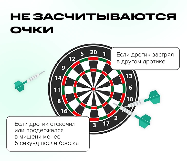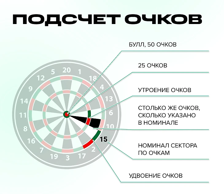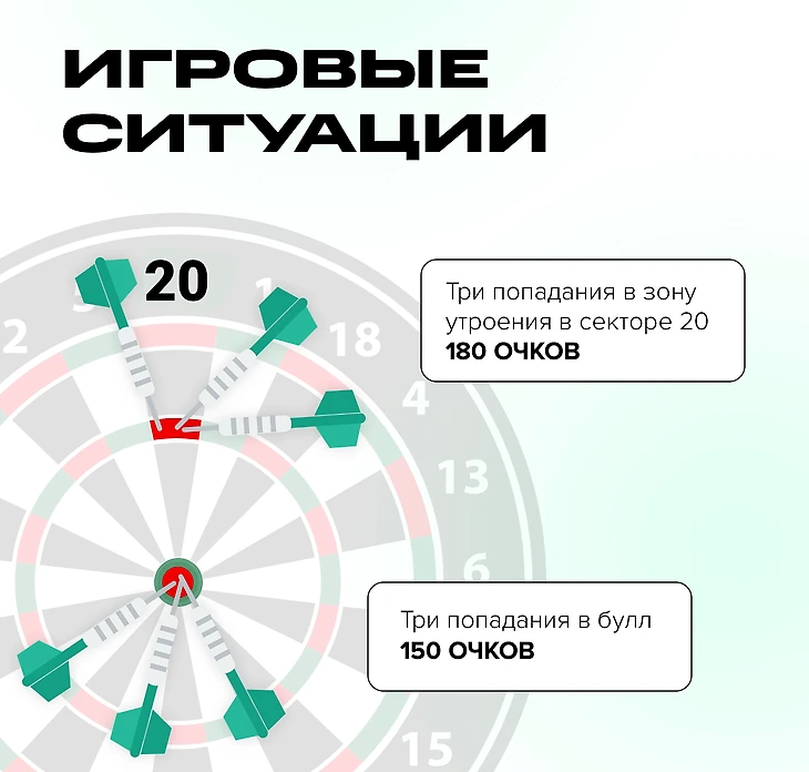 «Набор очков», «Сектор 20», «Булл» и «Крикет». В этих версиях нужно наоборот набрать максимум очков