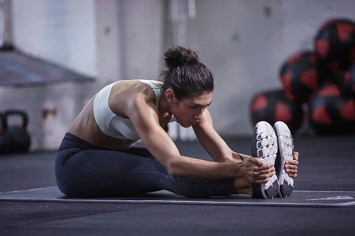 В конце тренировки на коврике очень удобно делать растяжку. Растяжка поможет избавиться от молочной кислоты в мышцах и сформировать красивый вытянутый рельеф, как у балетных танцоров. Тянуть ноги удобно с помощью эластичных лент. Наденьте ленты на стопы и вытяните ноги вверх пол прямым углом. Затем разведите их в стороны и держите за ленты, растягивая их. Можно добавить перекатывания с бока на бок. Затем лягте в позу младенца на колени и потяните спину, шею, руки - почувствуйте максимальное вытяжений. Затем можно лечь на спину и колени подвести к груди, вытягивая шею вперед.