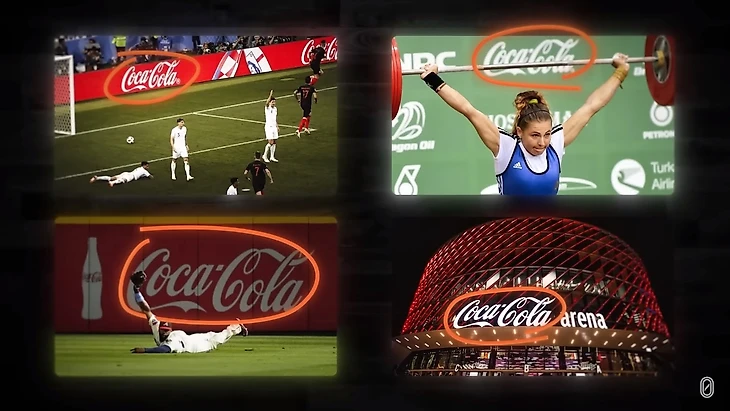 Моменты празднования для «Coca-Cola» - то же, что элитные спортсмены для «Nike». «Жизнь на вкус хороша, откройте счастье, попробуйте ощущения», - маркетинг «Coca Cola» всегда был направлен на продажу этого стиля жизни. Что может быть лучше, чем расклеивание своего логотипа по всем стадионам и заполнение телевизионных пауз вдохновляющими рекламными роликами? Таким образом, их логотип никогда не будет далеко от величайших спортивных моментов нашего времени и глаз 3 миллиардов зрителей.