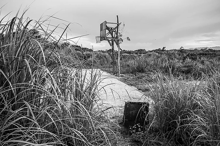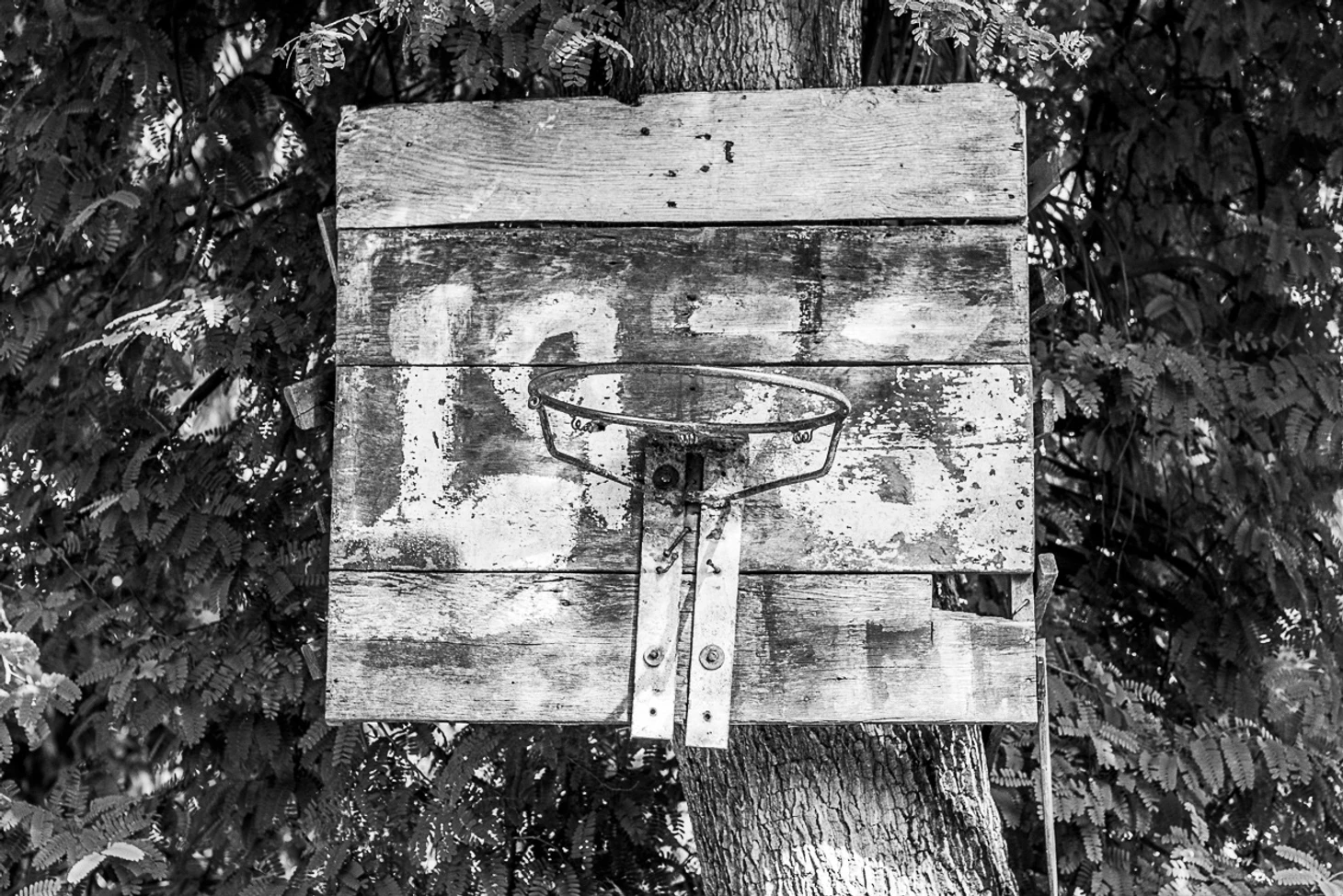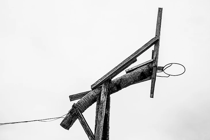 На большинстве снимков проекта одиночные обручи на задних дворах людей или в сельской местности. Эти районы обычно очень труднодоступны и часто находятся под запретом.В большинстве случаев этих мест юридически не существует. Кольца и щиты делают из любого доступного материала. Щиты обычно устанавливают на деревьях, поэтому высота кольца увеличивается по мере роста дерева. Очень у немногих игроков есть деньги на покупку спортивной обуви, поэтому и взрослые, и дети играют в шлепанцах или босиком на игровых поверхностях, покрытых мусором.