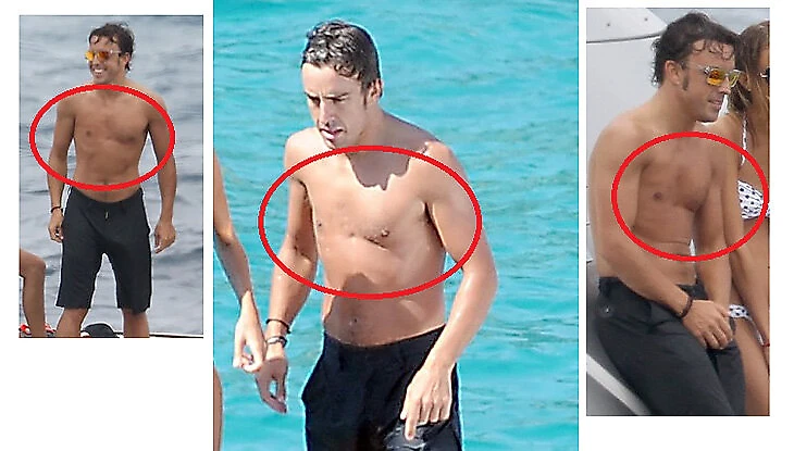 В середине 2000-х папарацци заметили странность в теле двукратного чемпиона «Ф-1» Фернандо Алонсо: по фото с отдыха на яхте можно смело предположить, что с одной стороны отсутствует большая грудная мышца.