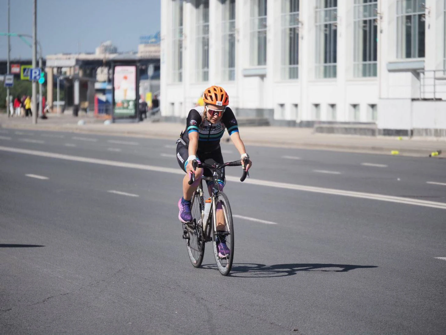 Ну всё, вот я и в седле подумала я и начала двигать ногами, ну точнее крутить педали конечно же... Первый круг, полет нормальный, разведала, где стоит пункт питания, оценила покрытие дороги и подъемы в мосты)