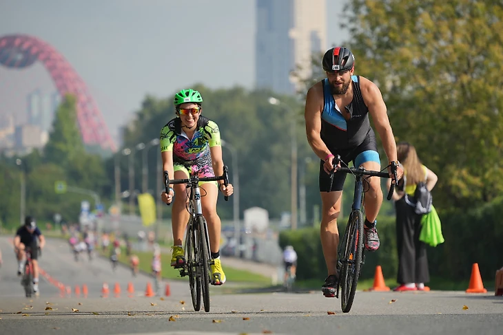 В транзитке было уже полупусто, потому что все звезды отечественного триатлона, которые разминались, пока я зевала, уже похватали велосипеды и ускакали, свистя шашками. Велоэтап был очень комфортный: без заезда на эту жуткую олимпийскую велотрассу "выплюнь-легкие-возьми-новые", где не то что на велосе, пешком-то подняться невозможно, а спуститься можно только поседев и потеряв кал. И вот на третьем круге меня вдруг окликает велосипедист словами "привет трайбанам!" (Тут надо объясниться, что Трайбан - это мой велос родом из Декатлона, базовый шоссейничек, который стоит примерно в 25 раз дешевле всего того, что ехало вокруг меня. Что не помешало ему, между прочим, обструячить обскакать на последних Московских велозаездах некоторые шоссейники, которые стоят больше, чем моя машина вместе с хозяйкой!) Ну то есть это "привет трайбанам" звучало как "привет нищебродам". Но как только этот велосипедист поравнялся со мной, стало ясно что это тоже трайбан и фраза стала звучать как "привет коллега"😁. Коллега-Леха предложил мне сесть к нему на колесо и последний круг, да и весь велоэтап прошел еще веселее. (На финише, правда, Леха признался, что он аж вспотел впахивать последний круг, но было уже неудобно раз девицу посадил на колесо, а я призналась, что последний круг я аж вспотела, но было уже неудобно отставать, раз позвали). В транзитке сзади меня весело окликнул триатлет, мол, чего идешь? Беги, ты ж в кроссовках! (Дело в том, что я как первобытная не юзаю велотуфли, поэтому катаюсь на велосе сразу в кроссовках с туклипсами, и в отличие от тех, кто крутит в велотуфлях, мне после спешивания (я выучила новое слово!) удобнее сразу бежать в кроссах. Велосипедисты в велотуфлях же бегают как горнолыжники в горнолыжных ботинках - то есть никак😁) Повернулась посмотреть, кто так пришпорил моих коней, а триатлету-то лет 70!! (снимаю шляпу перед возрастной категорией 50+ на любых стартах, но об этом отдельный пост нужен)! Стало неудобно перед возрастом опытом, пришлось изобразить, что я бегу.