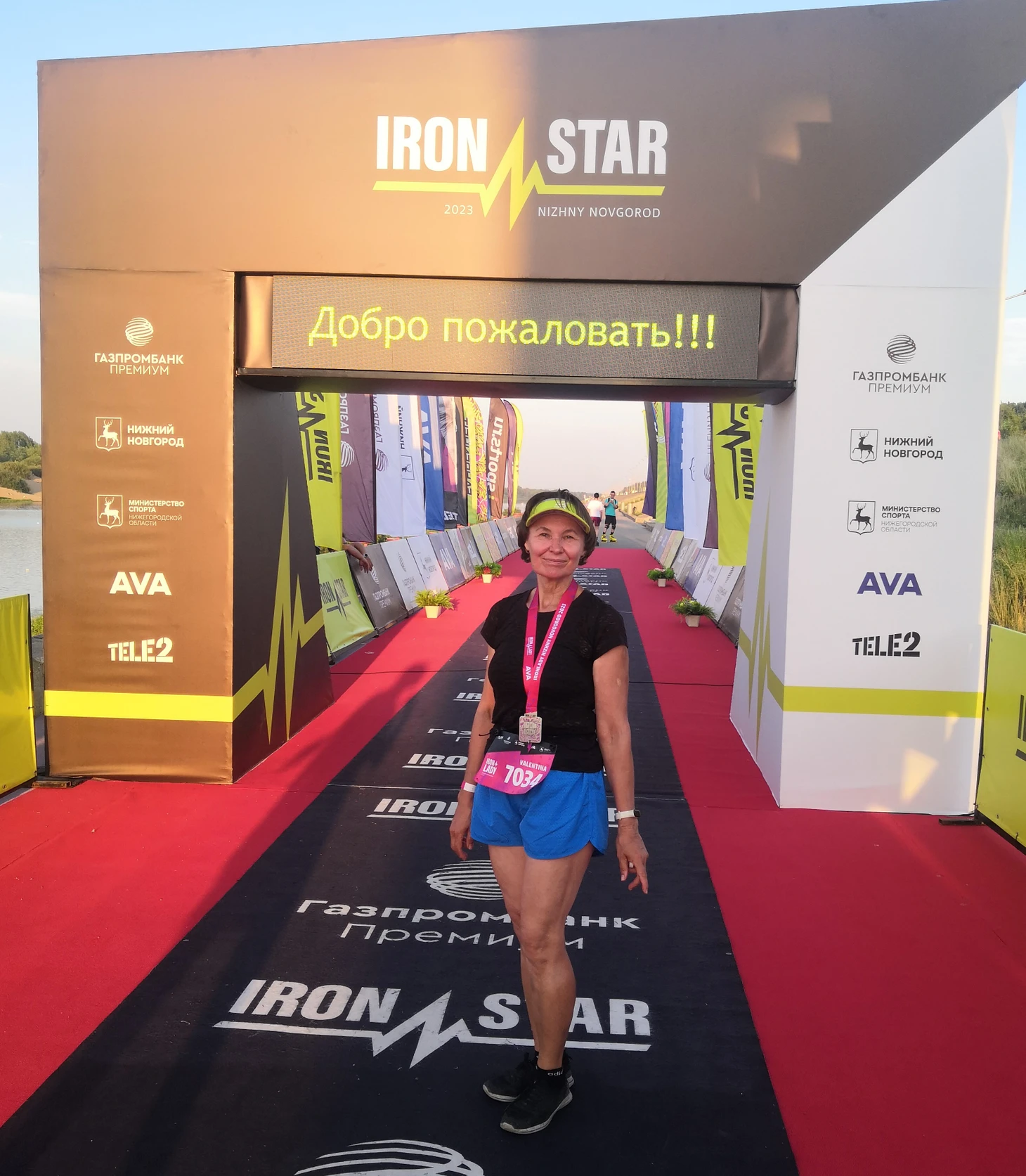 Наконец дистанция позади, мама подбегает к ковровой дорожке, дети из нашей «айронбанды» начинают кричать: «Давай, бабушка, собери все силы, беги!!!» Легкое удивление в рядах болельщиков возле финишной арки («Как это бабушка?!») сменяется бурными аплодисментами и мощной волной поддержки! Ведущий объявляет: «Щербаненко Валентина из Новосибирска, с берегов Оби на берега Волги!» Время 35:24. Минута славы, счастья и эйфории!
