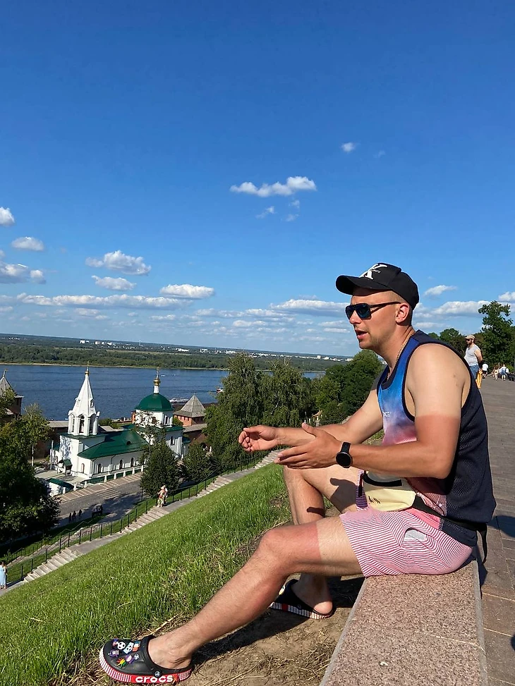 Все и второй этап выполнен и девушка снимает меня говорит молодец а я выпив всю воду очень хотел пить и говорю пить .... хочу, она со стороны набережной не побоявшись того что упадет искала мое место в транзитке чтобы дать мне попить. Попив воды и пробы в транзитной зоне 5:13 я перешел на заключительный этап бега. Пробежав три километра я понял что под такой сильной жарой мне бежать еще 18 км и тут мне стало еще больнее. Беговой этап стал самым мучительным и тревожным я еле бежал а пульс у меня 158 был, я не стал загонять себя в долги и просто добегал поэтому вот такой у меня плохой результат 02:21. В итоге завершился мой первый старт 113 НН и я был очень рад.