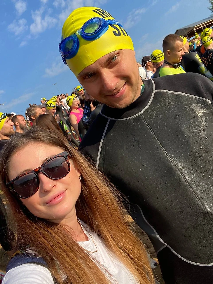Ну вот и завершается 4 августа мы встретились с моим другом и его женой, общавшись и веселившись я сказал да вообще не переживаю уверен, они немного выпивали и вкусно кушали а я был спокоен и пил чай. Посидели немного, поехали в гостиницу и спать ведь завтра рано вставать и тратить очень много калорий. Вот ложусь спать и тут начался мандраж, не мог уснуть долго, но все таки уснул. Проснувшись легкая сборка и моя ошибка что ничего не покушал. Приезжаем на набережную мы пошли пешком а кто то на самокатах. Все без лишней суеты находит свой велосипед и готовится к старту. Летают вопросы гидрик одевать или нет, решили что температура позволяет и можно в них, кто то мажется мазями, кто то подкачивает велосипед, кто то идет в одноразовых тапочках на старт. Ну вот мы уже у воды стартует элита, мы пока бултыхаемся рядом и пробуем воду. Слышу речь спортивного директора IRONSTAR Дмитриева Окишева и тут интрига нарастает.