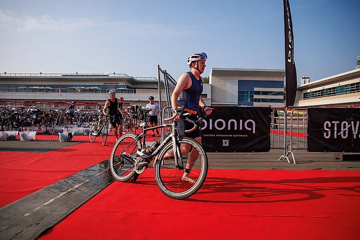 За плавательный этап я особо не переживал - всего 1,5 км. В доковидные времена я спокойно плавал по 3-4 км за тренировку по 3 раза в неделю. Вода была теплая, солнце сильно не слепило - поэтому проскользив по акватории гребного канала я начал перемещаться за велом - впереди было 40 км.