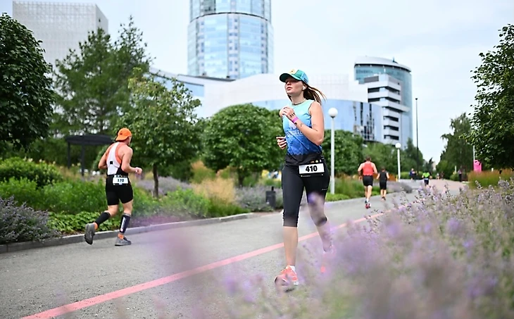 Стихия сжалилась. И лишь уральский ветер напомнил, что старт должен запомниться и преодолением себя. Против него мы забирались в горки и он же разгонял спортсменов на спусках. С уральским ветром в спину на лежаке - я ещё никогда не была смелее. Я потом посмотрю по часам максимальную скорость, а пока что я просто учусь летать и ничего не бояться. Хотя на третьем круге я устала и мечтала о ливне, чтобы был повод сойти. Впервые на триатлоне я преодолевала себя и мечтала о втором месте одновременно с тем, что бы сойти. Этап не успеет надоесть, потому что моментами ты едешь по трассе, а по бокам огромные сосновые леса. Моментами едешь по городу, по брусчатке, по трамвайным путям, по улицам, что я смогла рассмотреть и влюбиться окончательно и бесповоротно в этот город с его такой не интересной архитектурной. Город, что собрал дворцы и пятиэтажки, городские пруды среди современных бизнес центров, небоскребов и офисных зданий, что спрятались в деревянных избушках. Размышляя и выдыхая я разрешила себе заминку в 5 км сделать в режиме отдыха. Паркую велосипед в транзитной зоне, что расположилась на стадионе (такого вы тоже нигде не увидите), а мне кричат «ты вторая!»