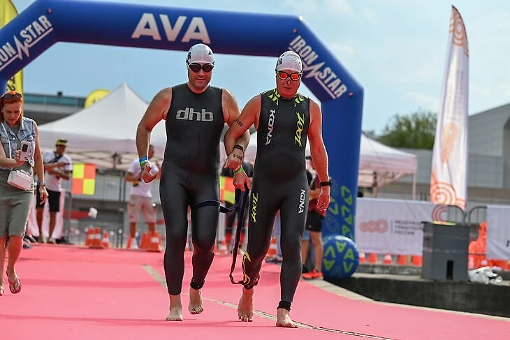 На «олимпийке» в Нижнем Новгороде он стартовал в тандеме со мной – для Саши это был первая олимпийка, а для меня – первый опыт триатлона со слепоглухим атлетом. Саша словил там тепловой удар. А уже через 2 недели после Нижнего мы решили проплыть наш первый совместный заплыв – SWIMSTAR Крылатское!