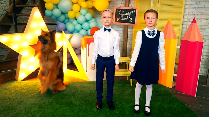 Чтобы ребятам было не скучно, вместе с ними разминки будет делать настоящая живая овчарка Пират!