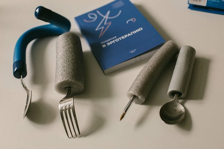 «Цели, связанные с самообслуживанием и двигательными переходами, идут параллельно. Например, человек только лежит и мы с ним учимся садиться. Вместе с тем в положении лежа он в состоянии пользоваться бутылкой с водой, очками, книгой, телефоном, пультом от телевизора. Он может поправить на себе одежду, доступна минимальная гигиена – обтереть тело влажным полотенцем и даже почистить зубы» – рассказывает Ася Доброжанская.