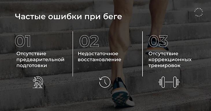 Многие начинают бегать без предварительной подготовки, не осознавая, что мышцы и сухожилия еще не готовы к значительным объемам и интенсивным нагрузкам. Последствия: повышенный износ тканей и опорно-двигательного аппарата, артрозы в молодом возрасте при хронической перегрузке, различные травмы.