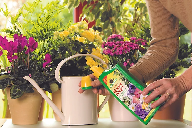 Плюсы использования жидких удобрений: питательные вещества быстро впитываются корнями растений, концентраты универсальные и подходят для всех видов комнатных растений, также их требуется мало, расходуются экономно и не оставляют осадка в почве.