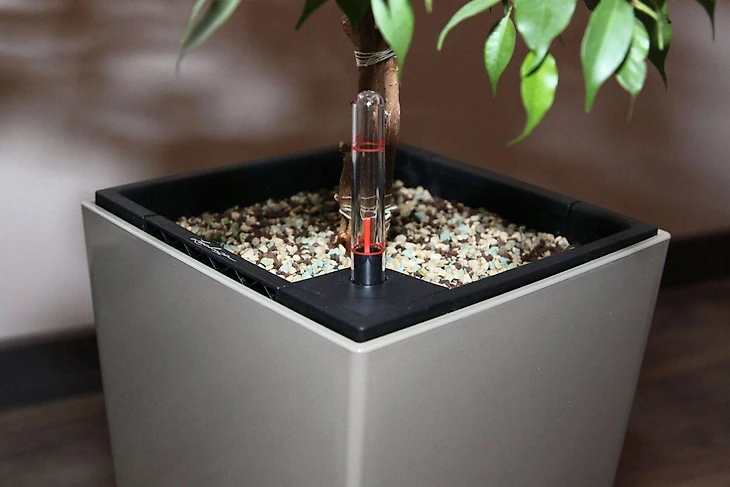 Горшок с автополивом — лучшее решение для комнатных растений, чтобы обеспечить постоянный доступ к воде. В таких горшках имеется резервуар для воды, из которого вода понемногу поступает к корням растения через специальный фитиль.