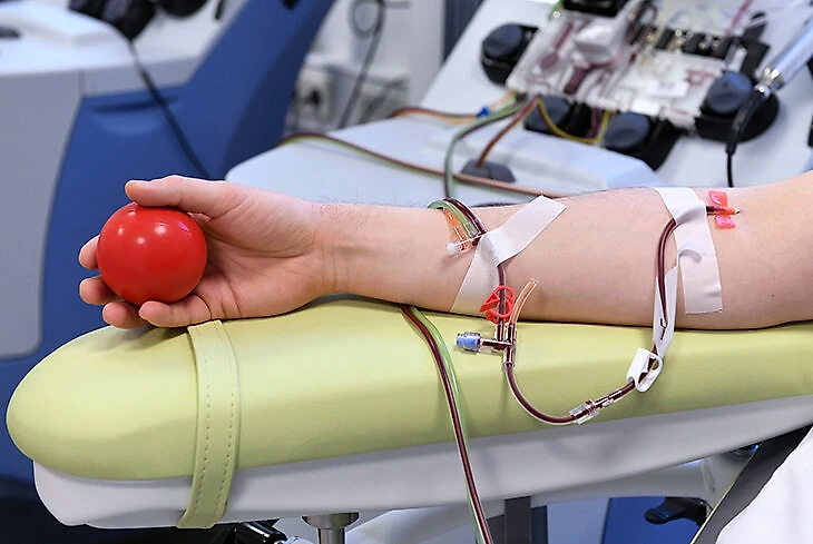 В день процедуры донору в вены на руках ставят катетеры, как при обычной донации крови, и подключают к аппарату, который прогоняет через себя кровь, извлекает из нее необходимые клетки, а остальное возвращает обратно.