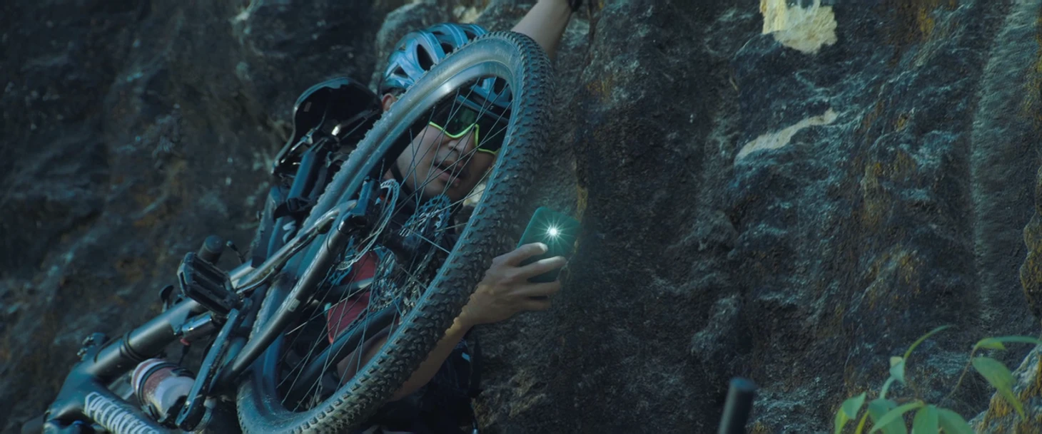 Кроме того, участники мультигонок сдают мобильные телефоны или запечатывают их на время соревнований, чтобы не иметь доступа к навигации. Но в фильме Лео документирует гонку на камеру своего смартфона. Это серьезное нарушение правил.