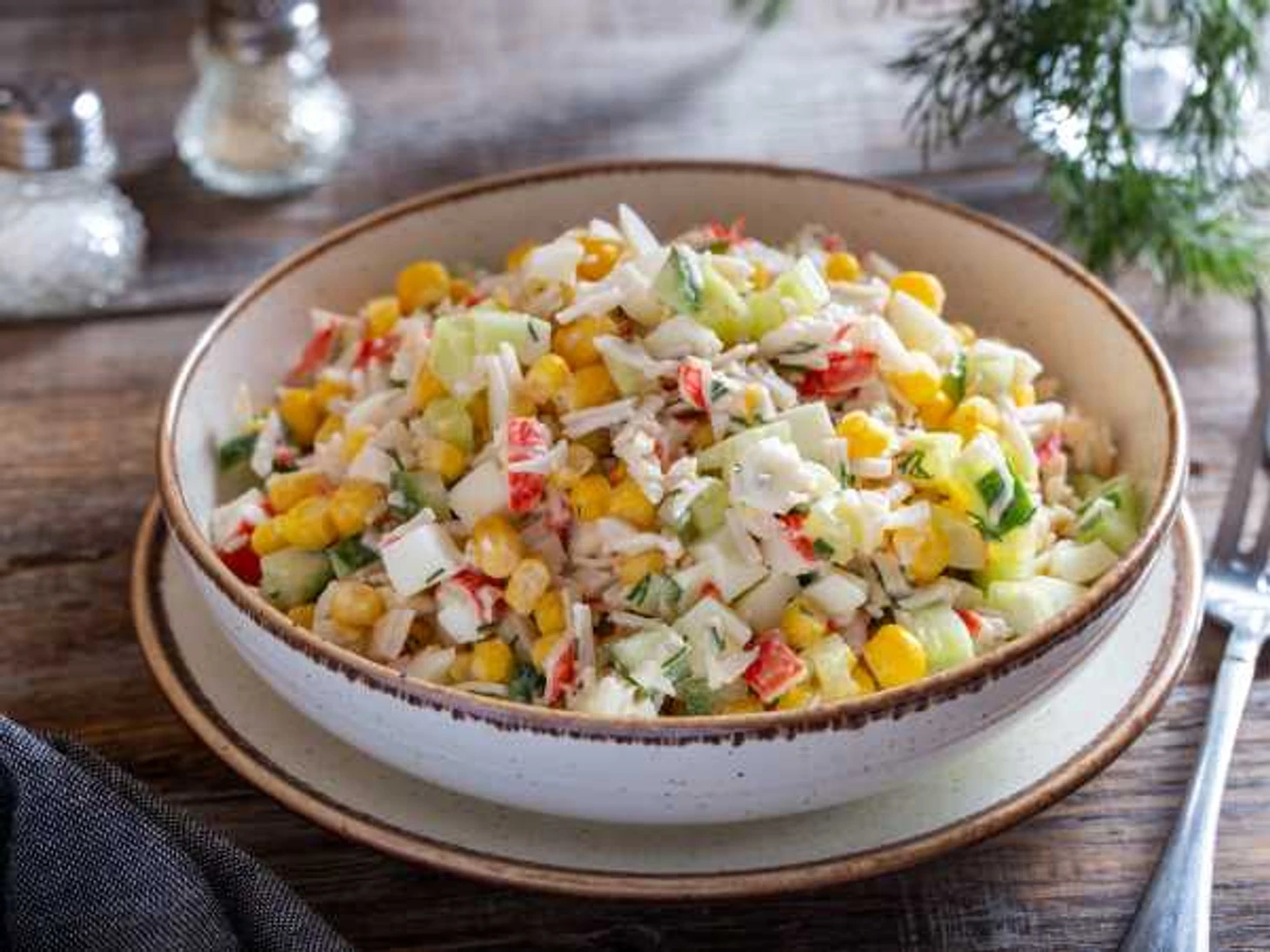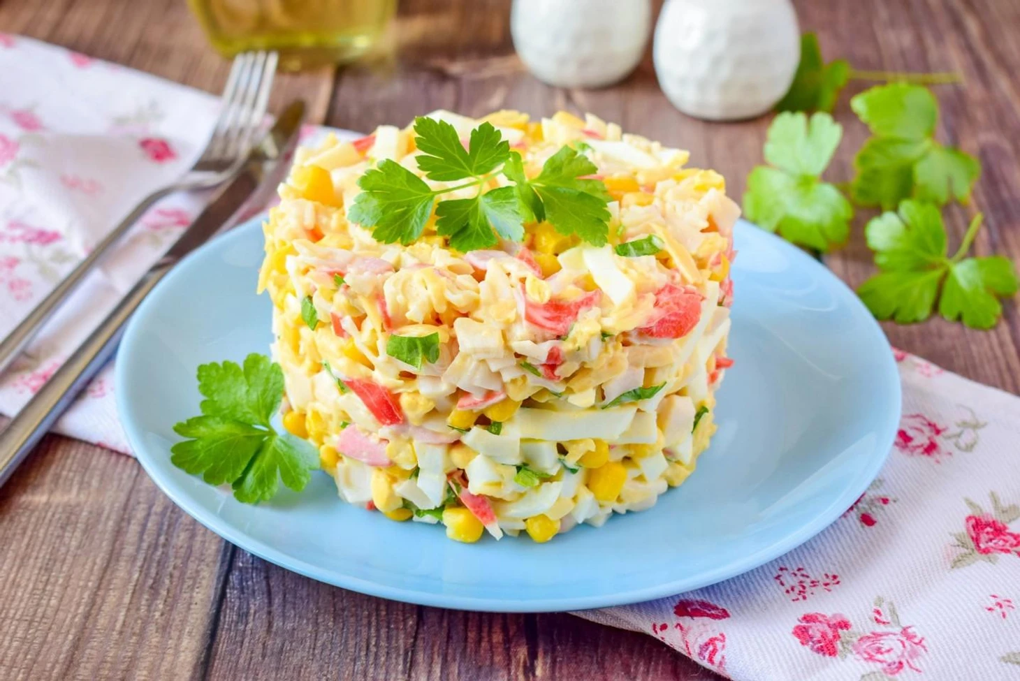 Классический салат с крабовыми палочками