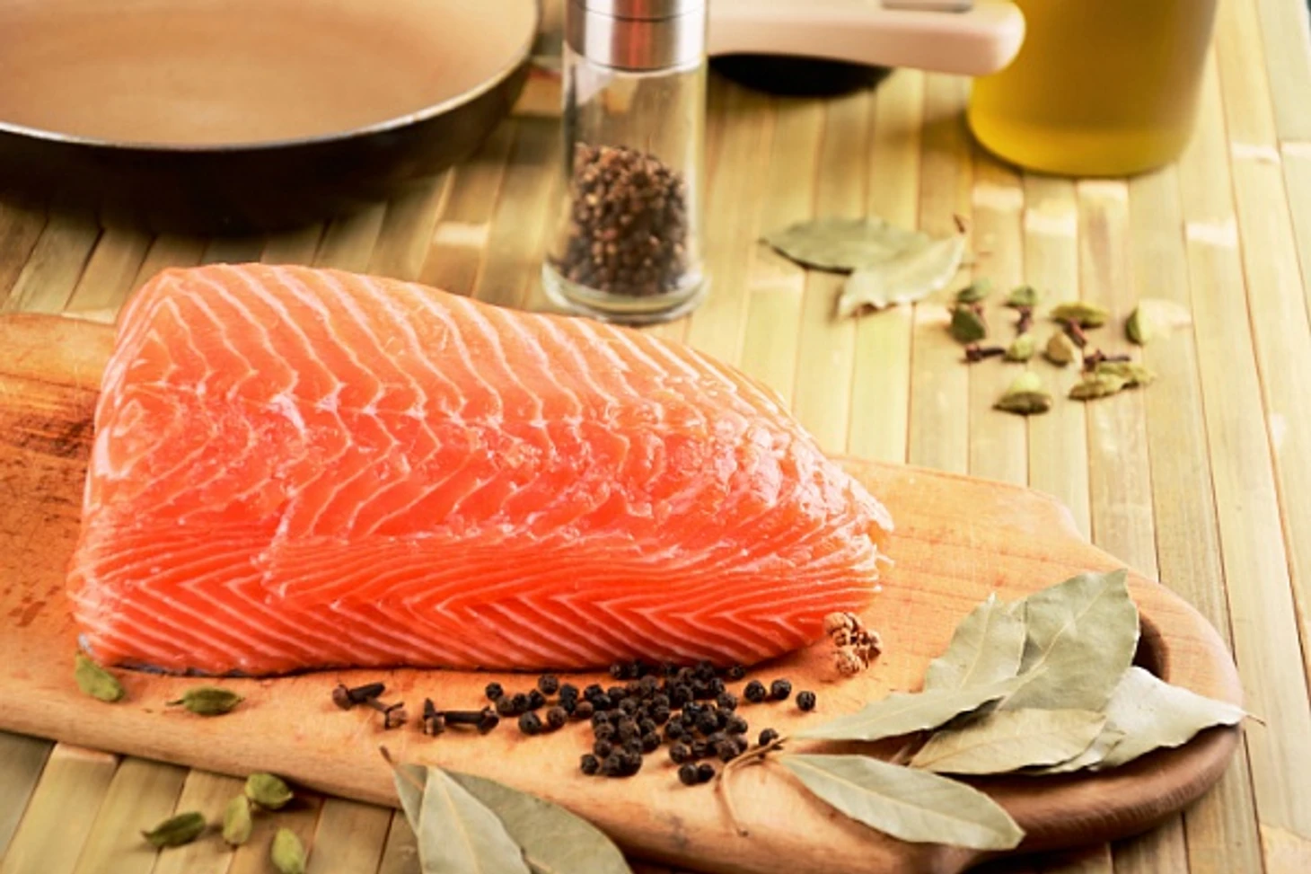 Алкоголь помогает сохранить текстуру рыбы, а зелень добавляет аромат.