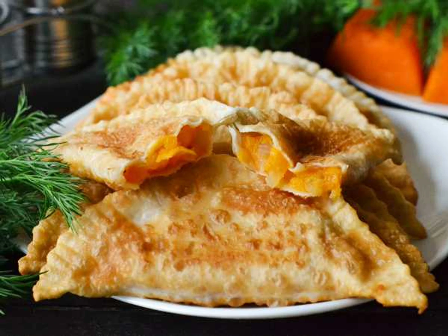 Этот вариант чебуреков удивит необычным сочетанием тыквы и теста на кефире, придающим блюду особую мягкость.