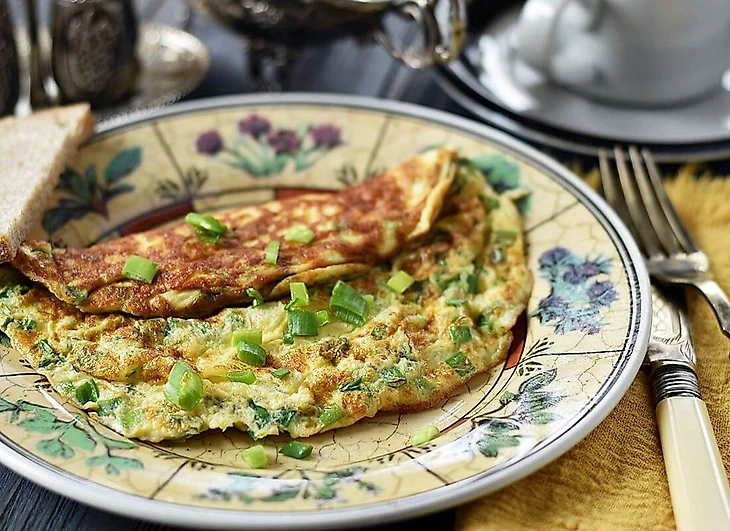 Еще один классический рецепт, который скрасит ваш завтрак – омлет с зеленым луком. Возьмите несколько яиц (в зависимости от ваших предпочтений и количества порций), разбейте их в миску. Добавьте немного молока или кефира. Нарежьте один пучок зеленого лука и добавьте его в яйца. Получившуюся смесь посолите, поперчите и взбейте венчиком. После этого омлет необходимо обжарить в течение пяти минут на среднем огне. Если сверху яйца не застыли, то накройте сковороду крышкой и снизьте газ до минимального – так они дойдут до готовности в течение еще пяти-семи минут. Сверху готовый омлет можно дополнительно посыпать зеленым луком и другой зеленью. Прелесть этого блюда, что можно дополнительно добавлять любые ингредиенты: овощи, мясо, специи. Все зависит исключительно от вашего чувства прекрасного.