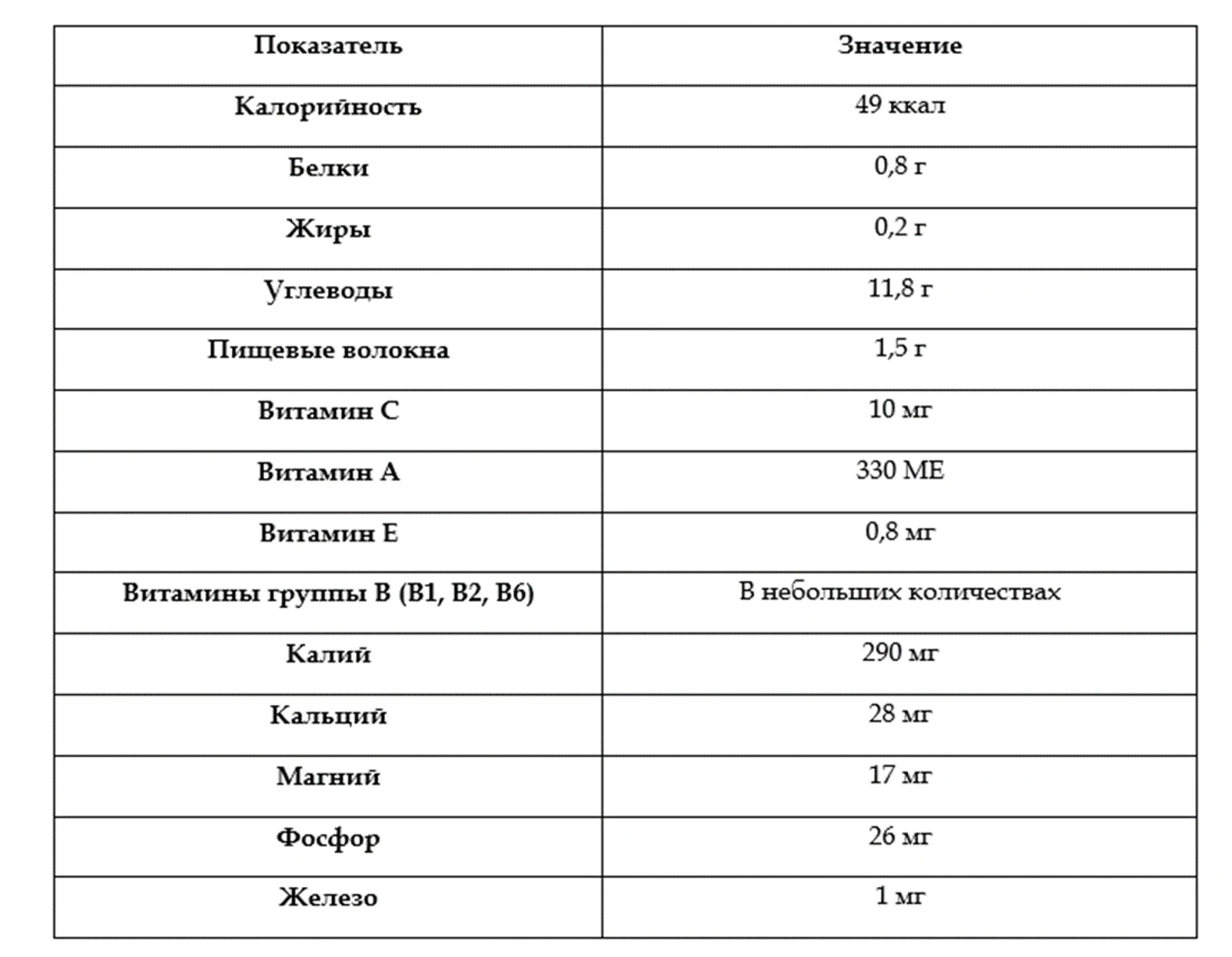 Чтобы детально оценить пользу и вред алычи для здоровья, посмотрите ее состав, приведенный в таблице.