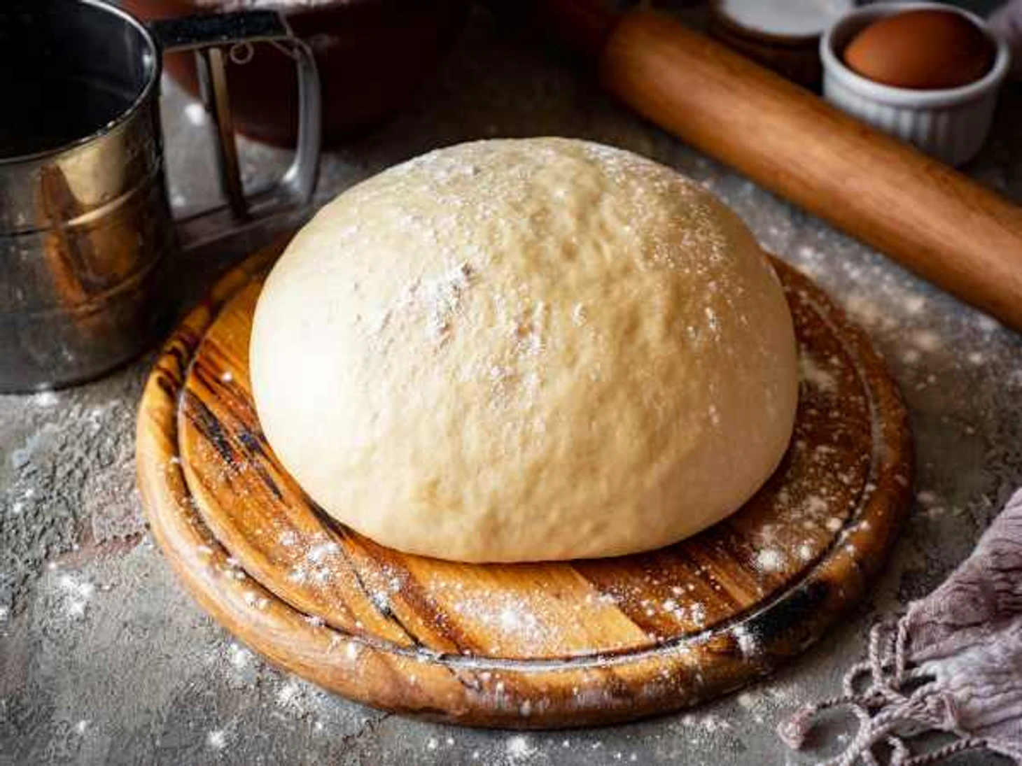 Оставьте тесто под полотенцем на 1½ часа. Когда оно увеличится в объеме в 2-3 раза, разомните его и дайте подняться ещё раз за такое же время.