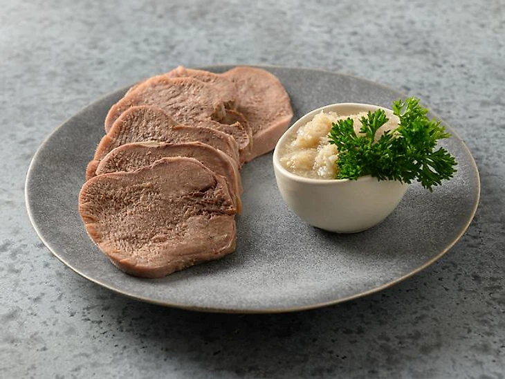 Подача: подавайте язык с горчицей, хреном или любым другим любимым соусом.