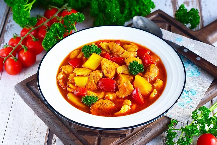 Этот рецепт куриного гуляша подарит вам сочное и нежное блюдо, которое готовится гораздо быстрее традиционного гуляша из говядины. Идеально сочетается с любым гарниром: картофельным пюре, рисом, гречкой или макаронами. Кроме того, куриный гуляш можно приготовить на ужин в будний день, когда времени на готовку совсем немного. Узнайте, как добиться идеального вкуса и текстуры!