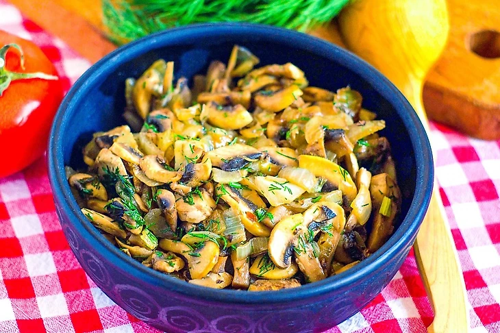 Если хотите добавить пикантности, попробуйте посыпать готовые грибы тёртым пармезаном или добавить немного чеснока в процессе обжаривания лука.