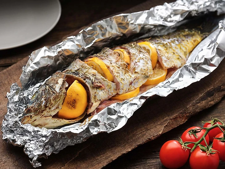 По желанию разместите ломтики лимона на рыбе и покройте оставшейся солью.