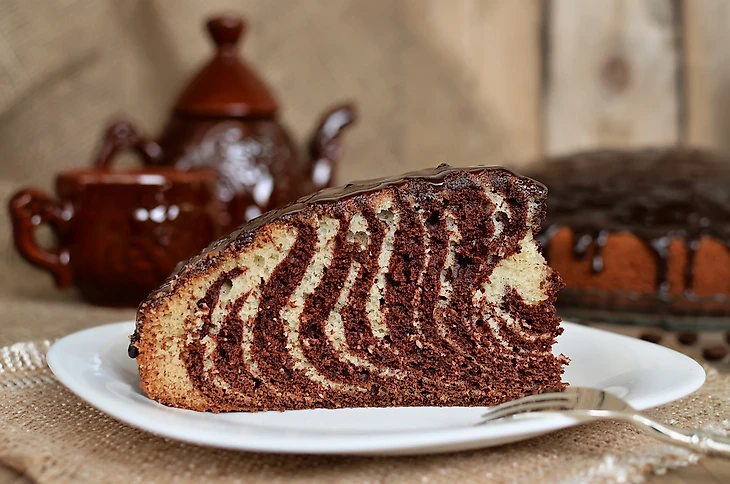 Веганский пирог «Зебра» с шоколадной глазурью и орехами
