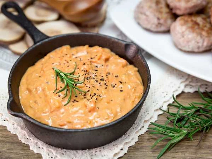 Этот соус — удачное сочетание традиционного соуса бешамель и сметаны. Он подходит для запеканок, пасты, лазаньи и просто как дополнение к готовым блюдам. Нежная текстура и мягкий вкус соуса придают любому блюду особую изысканность.