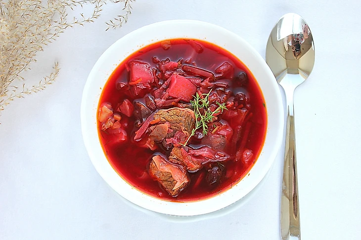 Традиционный борщ с говядиной — классика славянской кухни. Насыщенный вкус свеклы, мягкое мясо и свежие овощи — все это делает блюдо невероятно сытным и вкусным.