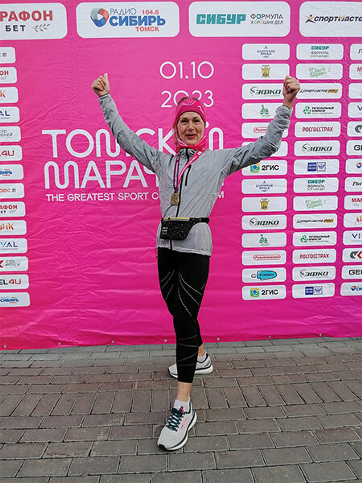 Анна Василиненко: «В 2021 году участвовала в „Ночном забеге» и Томском полумарафоне на дистанции 10 км. В 2023-м бежала 21,1 км. Также участвовала в „Удута» (памятный пробег имени Василия Удута – Спортс’’), Забеге.РФ, „Космическом марафоне» и беговом триатлоне.
