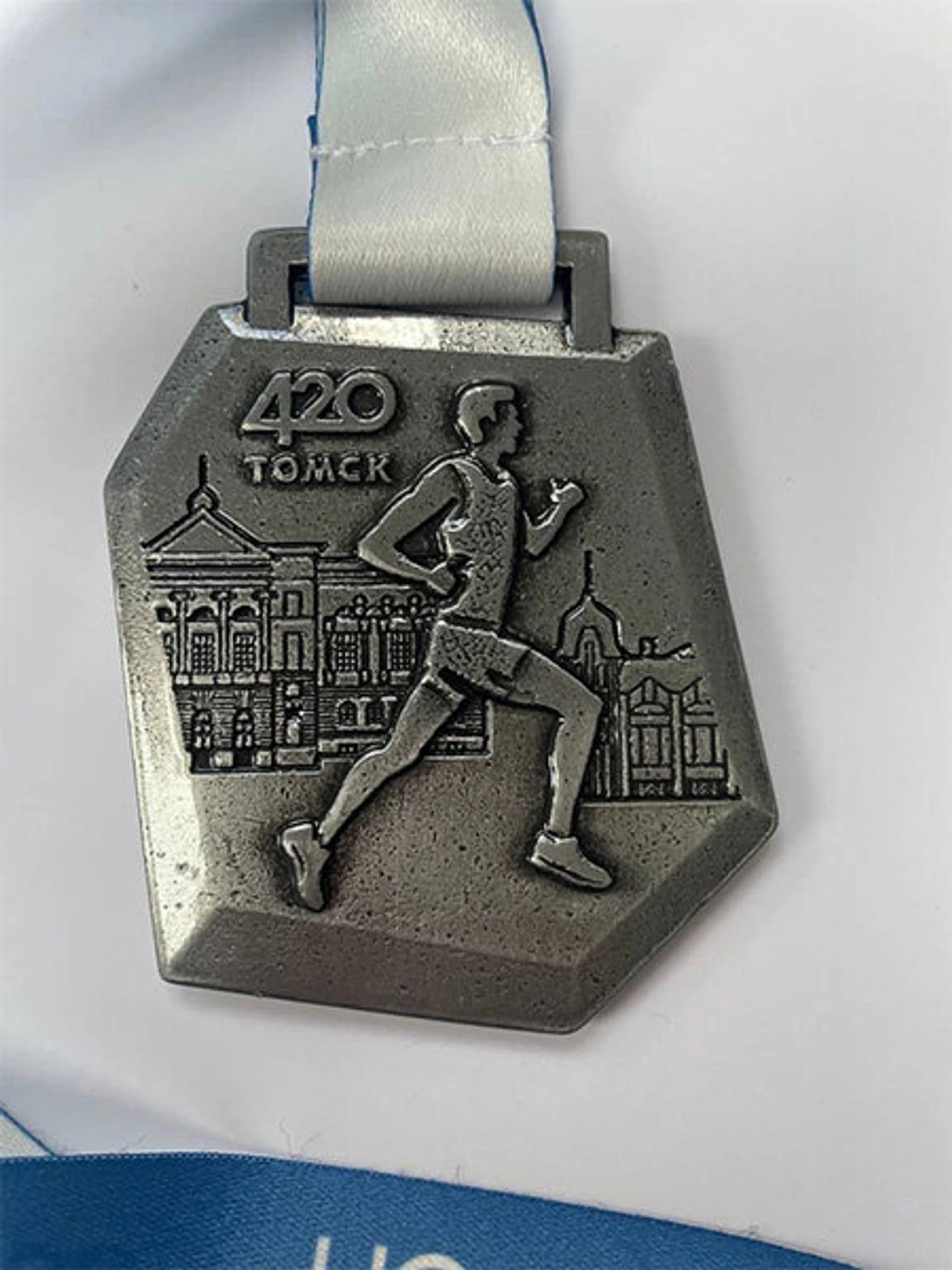 памятная медаль на финише – в 2024 году она была вдохновлена юбилеем Томска.